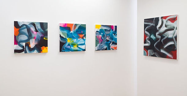 Her paintings are an improvisation. The marks, gestures and colours a response to and interpretation of what lies below on the canvas and the intrinsic relationship of each to the other. Gestural marks evoke a sense of transition and change.
